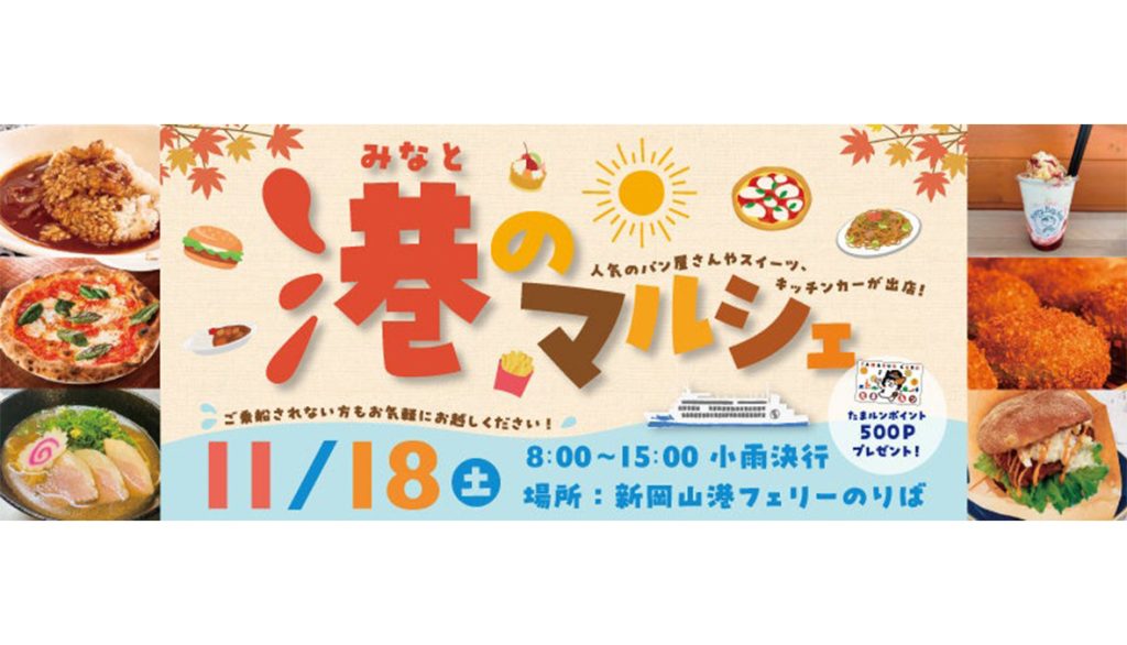 【11/18(土)「港のマルシェ」開催】人気店のキッチンカーが岡山港へ大集合!