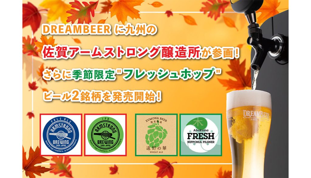 【発売開始】DREAMBEER に九州の佐賀アームストロング醸造所が参画!さらに季節限定"フレッシュホップ"ビール2銘柄!
