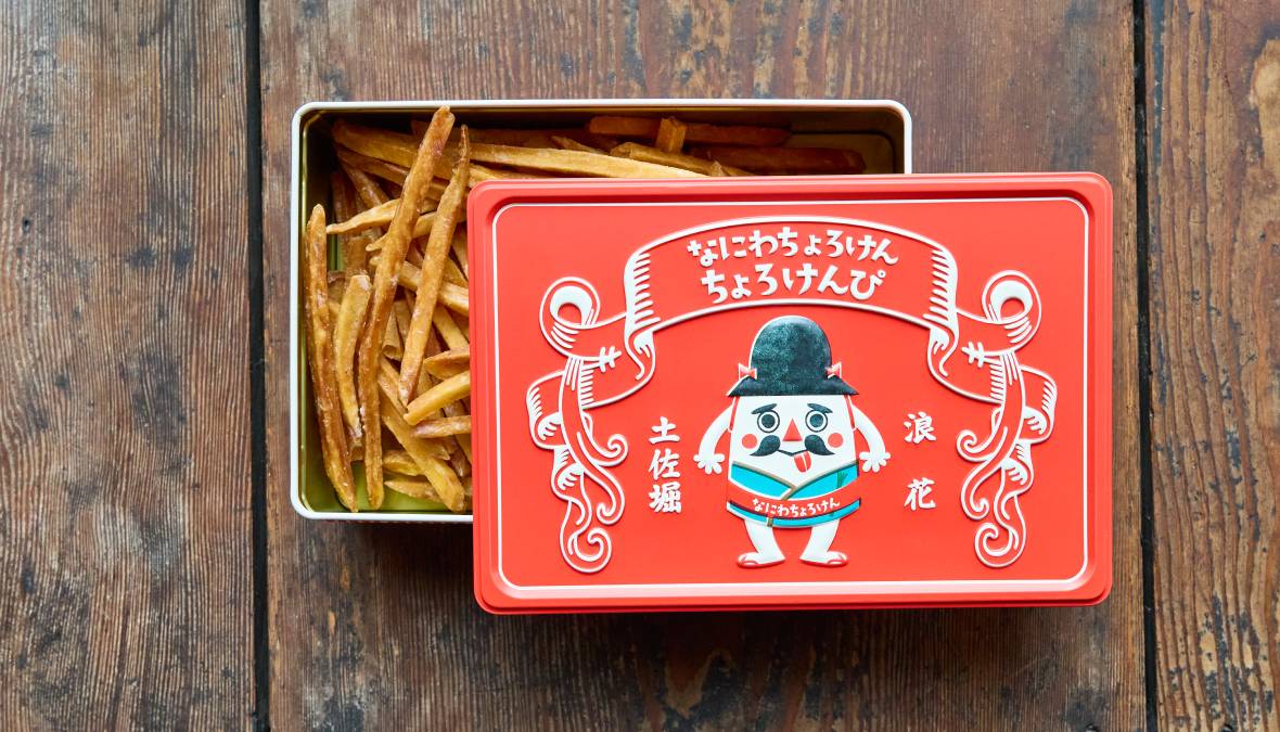 一癖も二癖もあるキャラクターが描かれたレトロな缶に入った芋けんぴやビスケット。製造販売する『一創堂』は風格ある古民家に居を構えているので、さぞや昔から続く老舗かと思いきや、創業は2019年。「大阪のおみやげはもっとおもしろくなるはず」という代表の野杁達郎さんの思いとともに始まった。