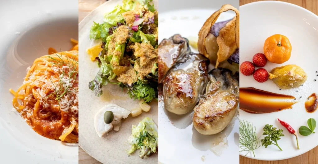 続いてテーブルには若き陶芸家が生み出した器が並び、江田島を愛する料理人たちが手がけた料理を味わうことができます。