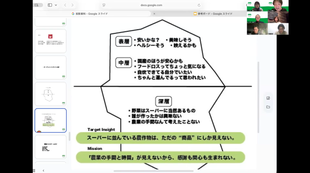 現地プログラムを終えた2日後、再びオンラインで集まりました。地域課題の解決方法を提案するという本プログラムの最終ゴールに向けて、現地で見聞きしたことを整理するのがこの中間セッションの目的です。
