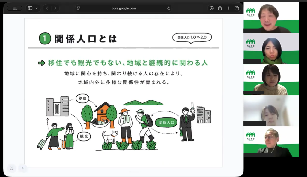 *そもそも関係人口とは何か、このプログラムで目指す関係人口の形(地域の課題を見つける、一緒に考える、地域と共に育つこと)