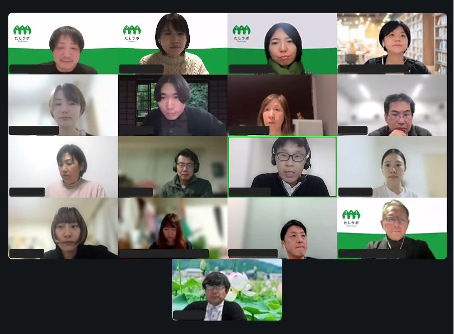 初日となる2025年11月19日は、オンラインプログラムを実施。宝塚市西谷地域との関わりも様々な参加者が集まるキックオフミーティングとして、プログラムの説明と参加者の顔合わせを行いました。