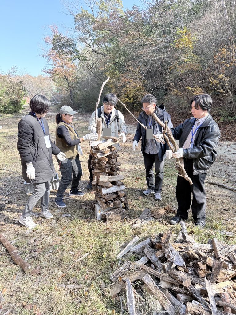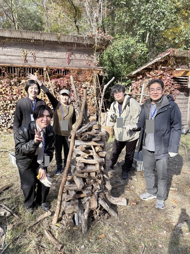これから関係人口として宝塚市西谷地域に関わっていく仲間になるためには、まず参加者同士が打ち解けることが大切。そこで最初のプログラムとして、アイスブレイク兼チームビルディングのワーク「薪タワーゲーム」を実施しました。