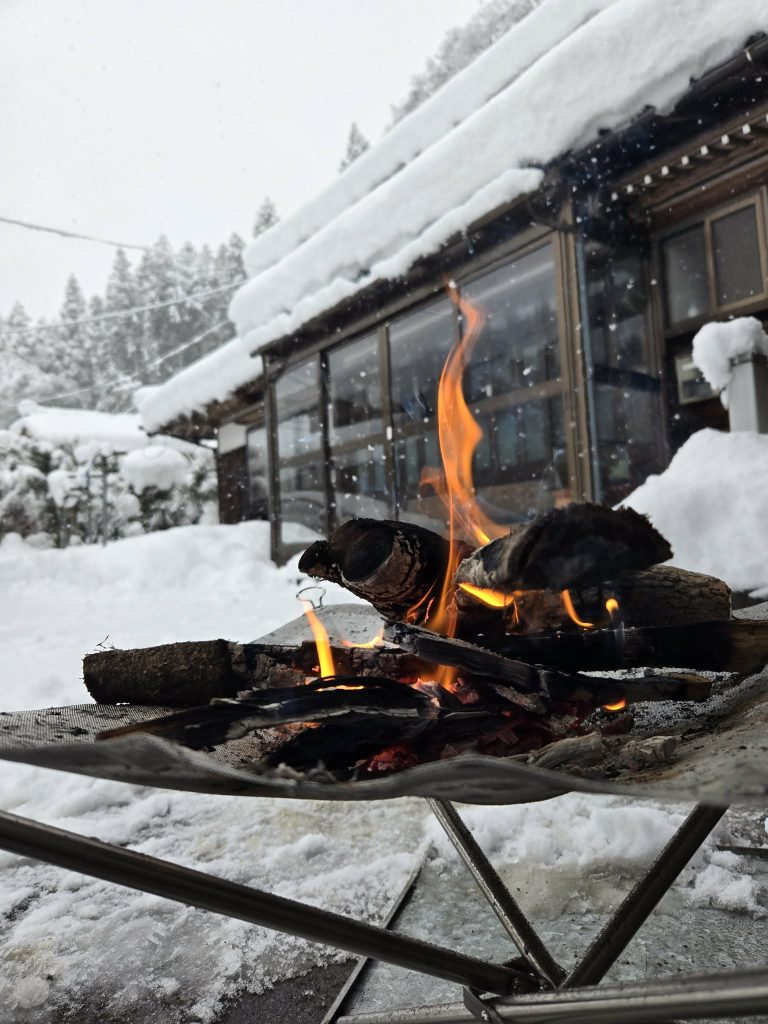 ふわふわ落ちてくる雪とゆらゆら揺れる火をぼんやり見つめる時間はとても気持ちが落ち着くものでした。