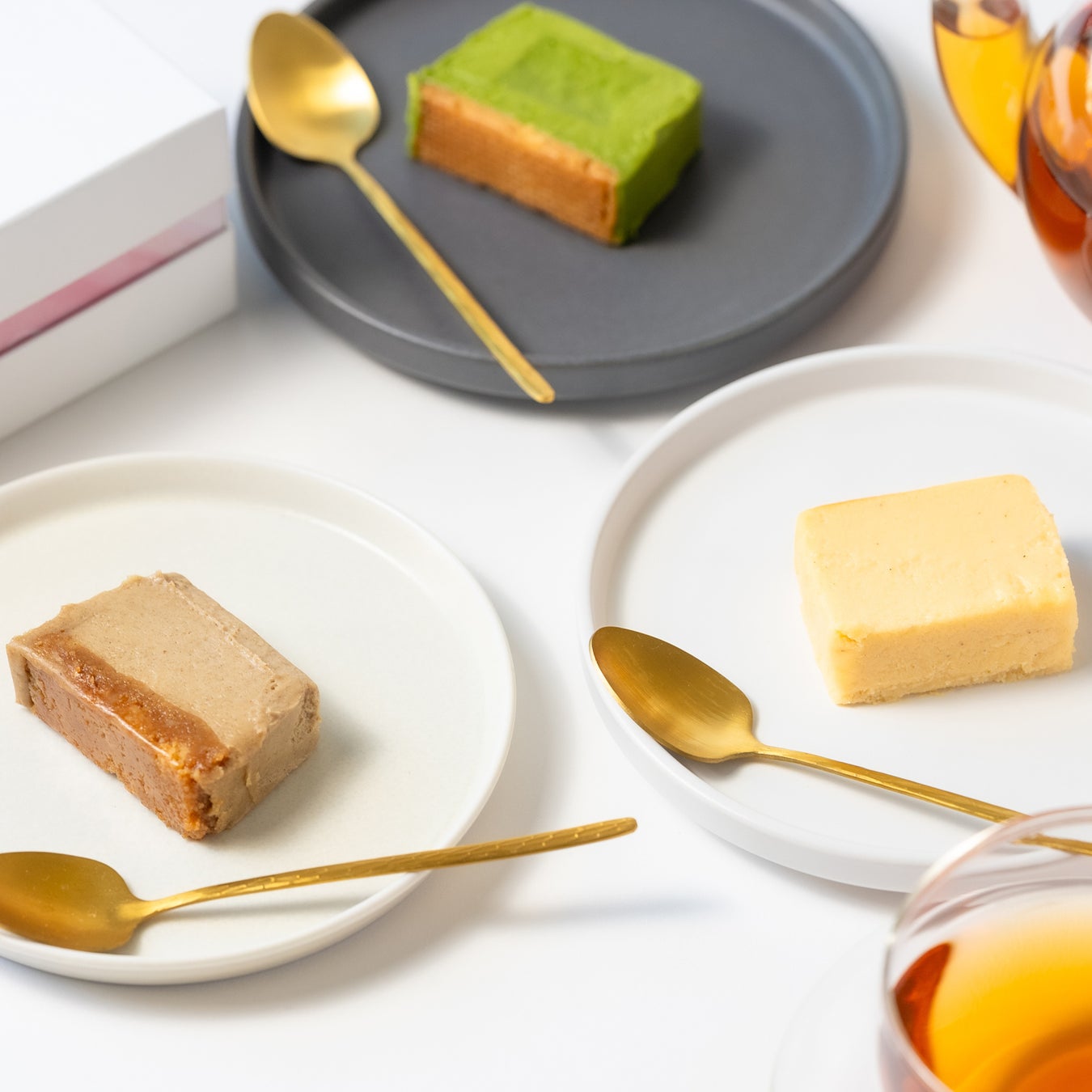 - with box(ギフトBOX付き)4,980円京むら抹茶レアチーズテリーヌ×2切れ富士凛ほうじ茶チーズテリーヌ×2切れとろける「生」バスクチーズテリーヌ×2切れ