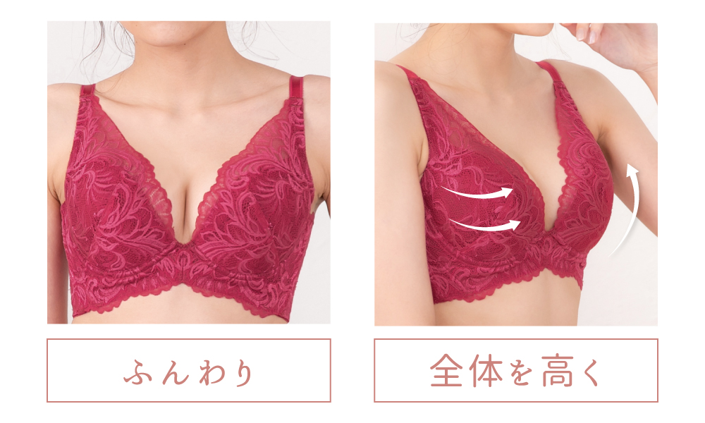 - 横広がりを抑える: カップ裏に伸びないリフトパーツを使用し、バストの横広がりを抑えて理想的な形をキープ。