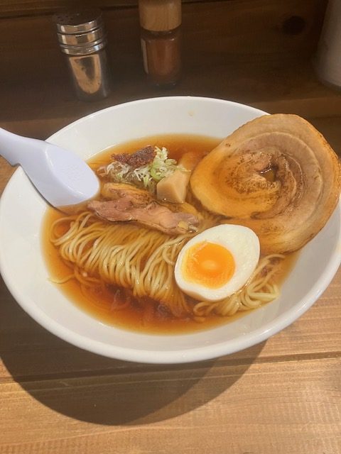ラーメン屋さんに入り、自分はカツオ出汁の効いた冷たいの、娘は澄んだスープの暖かいのをいただいて満足でした。